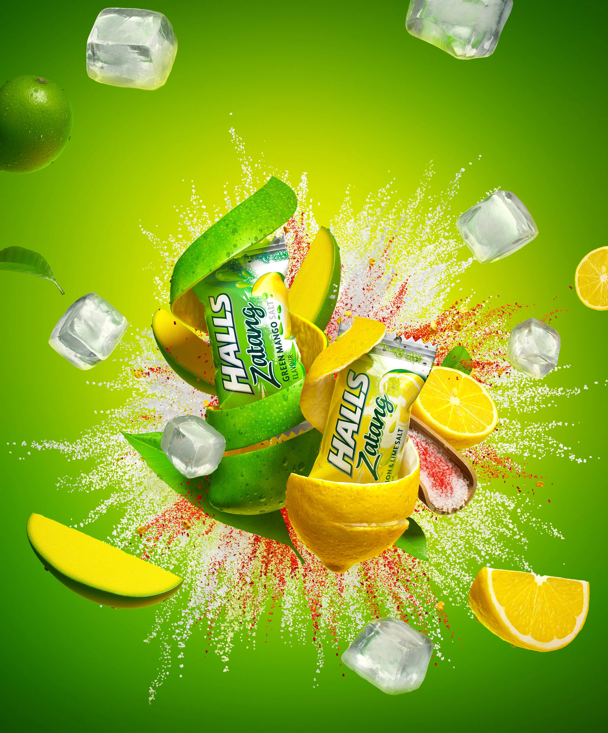 We were approached by Leo Burnett, Mumbai, to create a poster for Halls Zatang as they were launching 2 new flavoured candies. The layout presented a clear idea on what needed to be done. We worked on creating a salt and pepper blast using 3d simulation and then modeling the rest of the elements and the product to make an appealing composition.